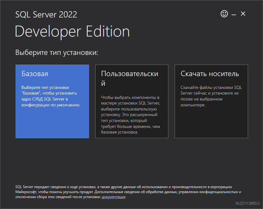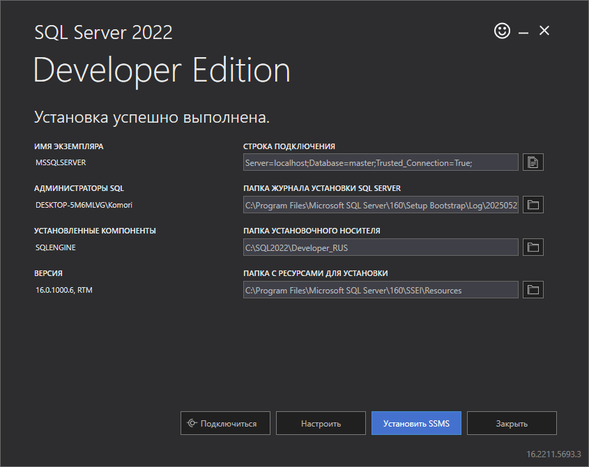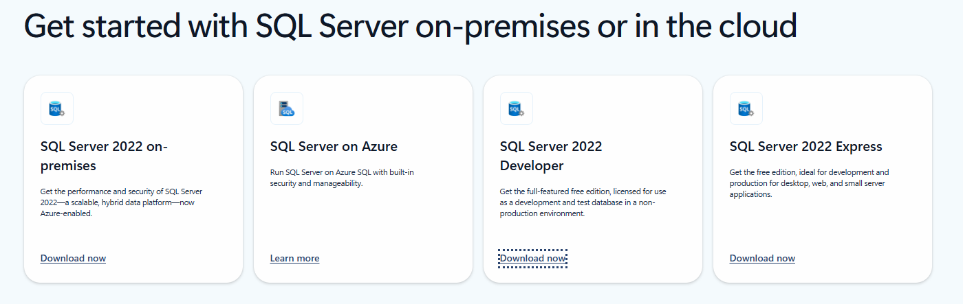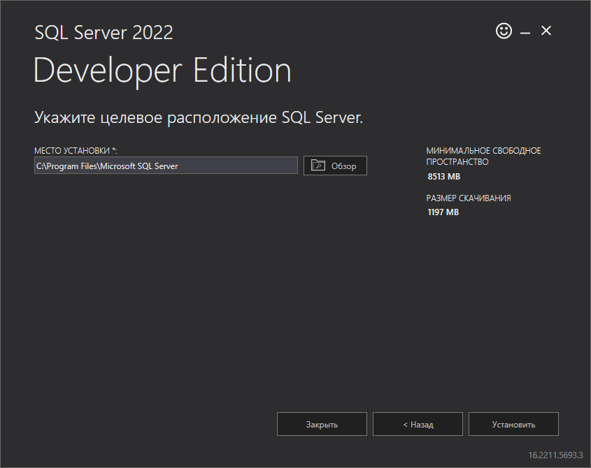 (1) Переходим на сайт: [https://www.microsoft.com/en-us/sql-server/sql-server-downloads], затем выбираем SQL Server 2022 Developer и устанавливаем