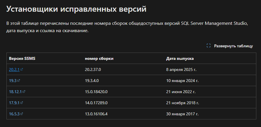 (5) 1 вариант: После успешной установки переходим по этой ссылке [https://learn.microsoft.com/ru-ru/ssms/release-history] и скачиваем последнюю версию SSMS.