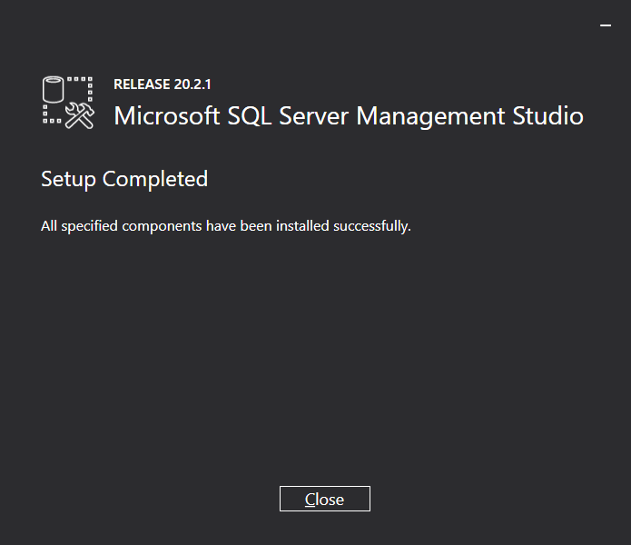 2 вариант: После успешной установки нажимаем на кнопку установить SSMS затем ищем последнюю версию и скачиваем, после чего можем нажать кнопку закрыть