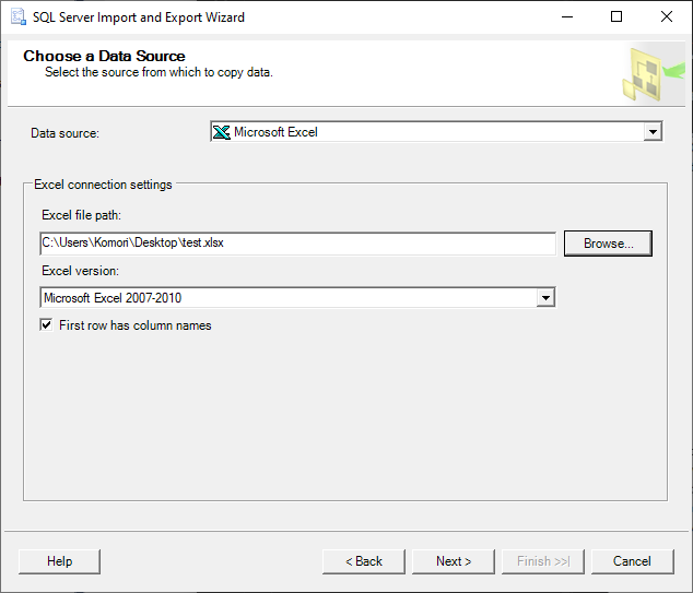 (2) В Data source указываем Microsoft Excel. В Excel file path файл типа “xlsx” с уже готовой БД. Excel version можно выбрать последнюю. После жмем next