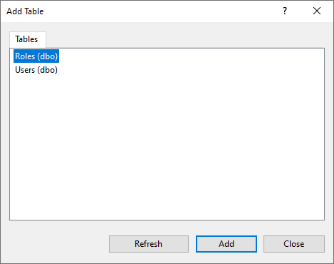 (2) В окошке Add table добавляем все таблицы (если это нужно)