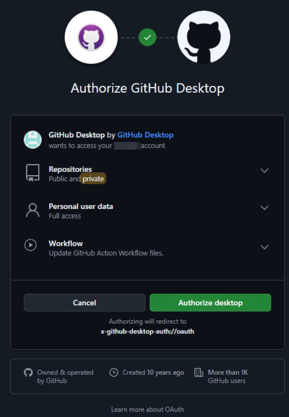 (4) После входа выполняем авторизацию - нажимаем Authorize desktop